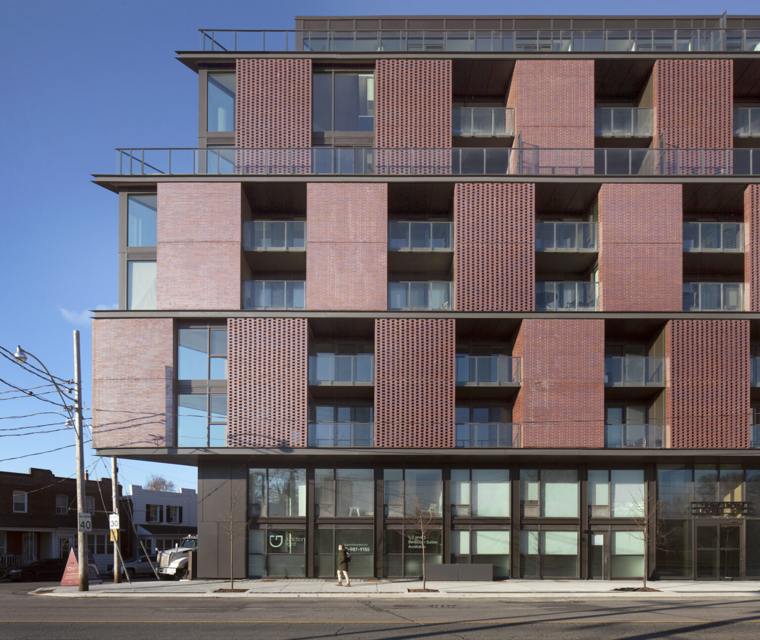 Designed by architectsAlliance, Junction Point is an eight-storey condominium featuring 111 meticulously designed suites. It is located at the gateway of the Junction, a vibrant neighbourhood known for its eclectic mix of art galleries, retail boutiques, and restaurants. The architecture has been thoughtfully conceived to match the authentic character of the surrounding community.