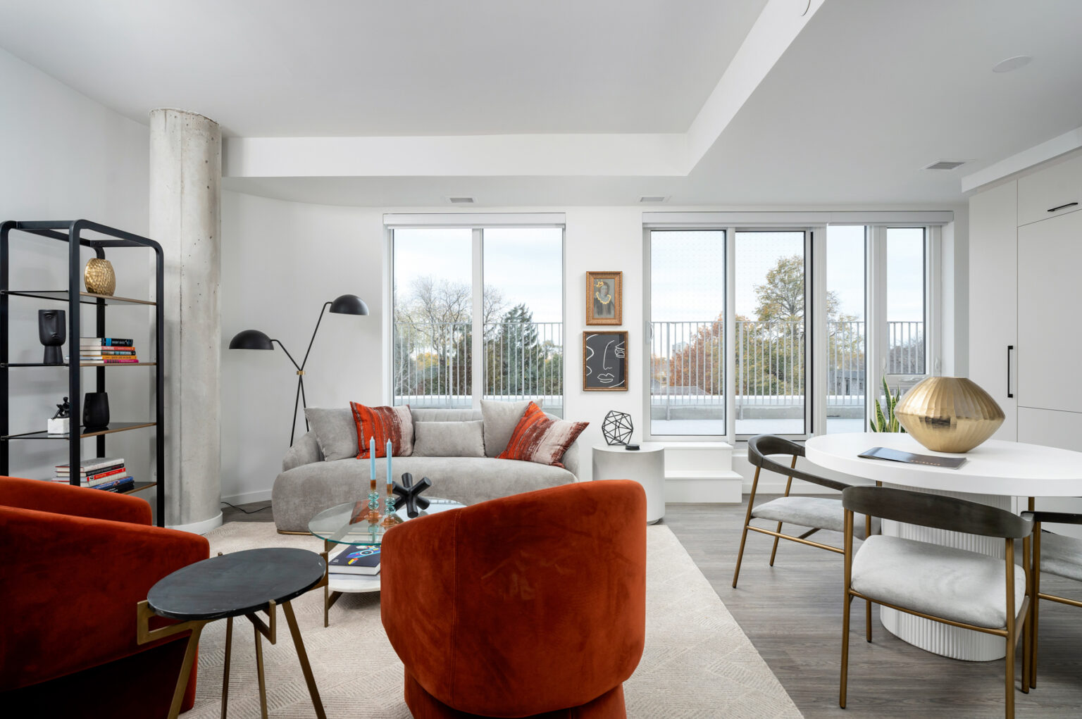 Reina marks a pioneering milestone as Canada’s first all-female residential development project. Located on one of Toronto’s fastest emerging residential avenues, the building introduces a wide variety of floor plans, multipurpose amenities, and tailored programming that caters to young families. With its light colour palette, meticulously landscaped surroundings, and elegantly curved, picketed balconies, Reina radiates captivating curb appeal. The development underscores innovation and inclusivity and enhances the community’s built landscape.